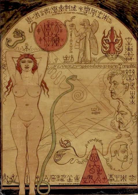 Spare would go onto author several books, including “The Book of Pleasure,” an artistic and sexual exploration of the subconscious. In his writings and practices Spare placed great emphasis on sigils and sexual magick throughout his life and claimed communication with many disembodied entities and elemental spirits. He created his own magical system, the Zos Kia Cultus, and pioneered advances in automatic writing, and emphasized the unconscious mind as a font of inspiration. Spare’s theories included sigil creation based on the concept of sentient symbols. His “alphabet of desire” remains influential, and his magical theories would influence Crowley’s student Kenneth Grant, and the chaos magick practitioners of the later 20th and early 21st centuries.