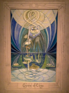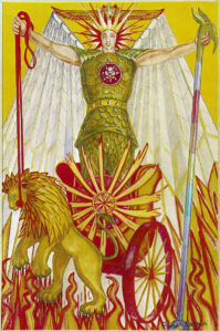 Marguerite Frieda Harris (1877 – 1962): British artist best known for her paintings of Crowley’s Thoth tarot.  She had a life long interest in spiritual matters and was drawn tothe teachings of Christian Science founder Mary Baker Eddy (1821–1910).  In the late thirties she began to study Anthroposophy and the writings of Rudolf Steiner (1861–1925).